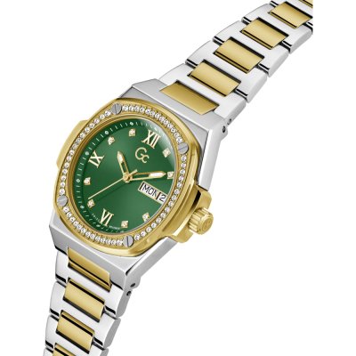 Zegarek marki GC ma stal chirurgiczna kopertę 36 mm średnicy i jest wyposażony w pasek z materiału metal. Wewnątrz koperty jest mechanizm Ronda i zegarek ma także szkiełko Szkiełko mineralne pokryte warstwą szafirową.