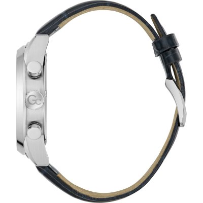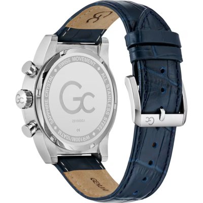 Zegarek marki GC ma stal chirurgiczna kopertę 42 mm średnicy i jest wyposażony w pasek z materiału skóra. Wewnątrz koperty jest mechanizm Ronda i zegarek ma także szkiełko Sapphire.