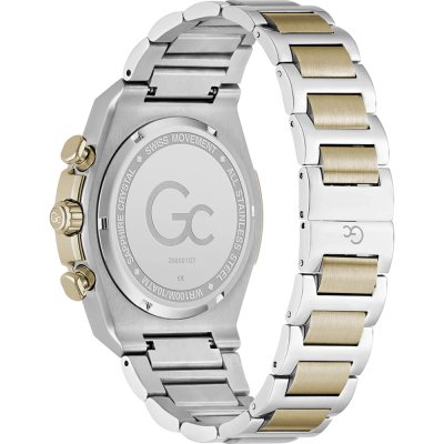 Zegarek marki GC ma stal chirurgiczna kopertę 45 mm średnicy i jest wyposażony w pasek z materiału stal chirurgiczna. Wewnątrz koperty jest mechanizm i zegarek ma także szkiełko Sapphire.