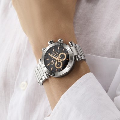 Zegarek marki GC ma stal chirurgiczna kopertę 44 mm średnicy i jest wyposażony w pasek z materiału stal chirurgiczna. Wewnątrz koperty jest mechanizm Ronda i zegarek ma także szkiełko Sapphire.