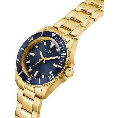 Zegarek marki Guess ma stal chirurgiczna kopertę 41 mm średnicy i jest wyposażony w pasek z materiału stal chirurgiczna. Wewnątrz koperty jest mechanizm Seiko i zegarek ma także szkiełko Mineralny.