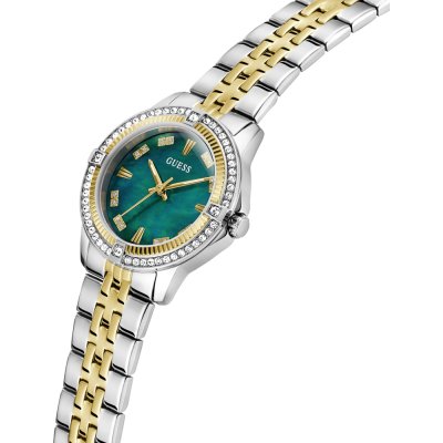 Zegarek marki Guess ma stal chirurgiczna kopertę 32 mm średnicy i jest wyposażony w pasek z materiału stal chirurgiczna. Wewnątrz koperty jest mechanizm Seiko i zegarek ma także szkiełko Mineralny.