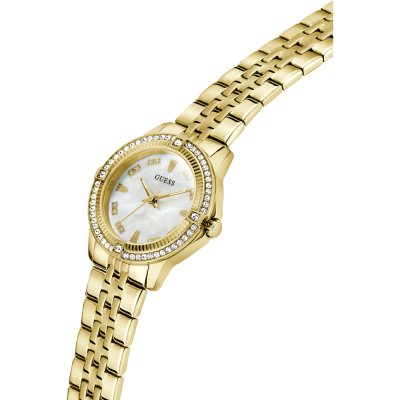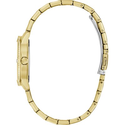 Zegarek marki Guess ma stal chirurgiczna kopertę 32 mm średnicy i jest wyposażony w pasek z materiału stal chirurgiczna. Wewnątrz koperty jest mechanizm Seiko i zegarek ma także szkiełko Mineralny.