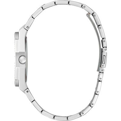 Zegarek marki Guess ma stal chirurgiczna kopertę 36 mm średnicy i jest wyposażony w pasek z materiału stal chirurgiczna. Wewnątrz koperty jest mechanizm Seiko Instruments Inc. i zegarek ma także szkiełko Mineralny.