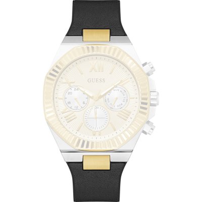 Pasek do zegarka Guess jest wykonany z materiału silikonowo i jest zamocowany do zegarka za pomocą… stalowe sworznie. Ten pasek ma szerokość 24 mm i zamyka się za pomocą sprzączka. Ten pasek nie ma prostego mocowania, co oznacza, że pasuje wyłącznie do zegarków z poniższej listy.