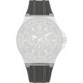 Pasek do zegarka Guess jest wykonany z materiału silikonowo i jest zamocowany do zegarka za pomocą… kołki sprężyste. Ten pasek ma szerokość 27 mm i zamyka się za pomocą sprzączka. Ten pasek nie ma prostego mocowania, co oznacza, że pasuje wyłącznie do zegarków z poniższej listy.