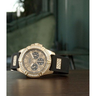 Zegarek marki Guess ma stal chirurgiczna kopertę 48 mm średnicy i jest wyposażony w pasek z materiału guma. Wewnątrz koperty jest mechanizm Seiko Instruments Inc. i zegarek ma także szkiełko Mineralny.