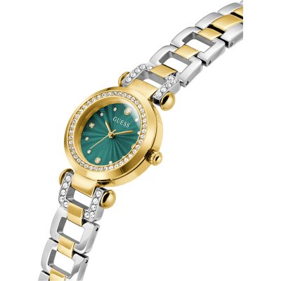 Zegarek marki Guess ma stal chirurgiczna kopertę 30 mm średnicy i jest wyposażony w pasek z materiału stal chirurgiczna. Wewnątrz koperty jest mechanizm Seiko i zegarek ma także szkiełko Mineralny.