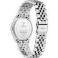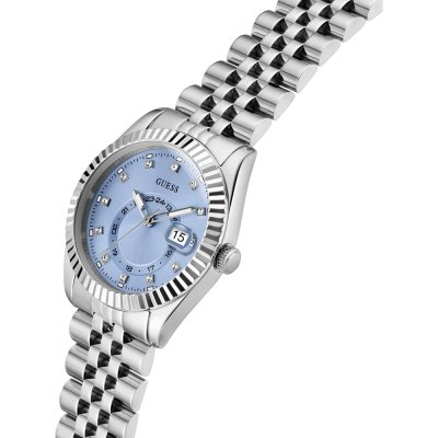 Zegarek marki Guess ma stal chirurgiczna kopertę 34 mm średnicy i jest wyposażony w pasek z materiału stal chirurgiczna. Wewnątrz koperty jest mechanizm Seiko Instruments Inc. i zegarek ma także szkiełko Mineralny.