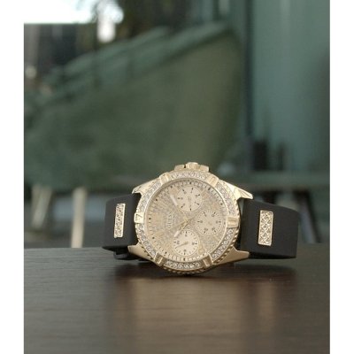 Zegarek marki Guess ma stal chirurgiczna kopertę 40 mm średnicy i jest wyposażony w pasek z materiału guma. Wewnątrz koperty jest mechanizm Seiko i zegarek ma także szkiełko Mineralny.