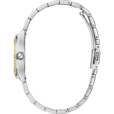 Zegarek marki Guess ma stal chirurgiczna kopertę 30 mm średnicy i jest wyposażony w pasek z materiału stal chirurgiczna. Wewnątrz koperty jest mechanizm Seiko i zegarek ma także szkiełko Mineralny.