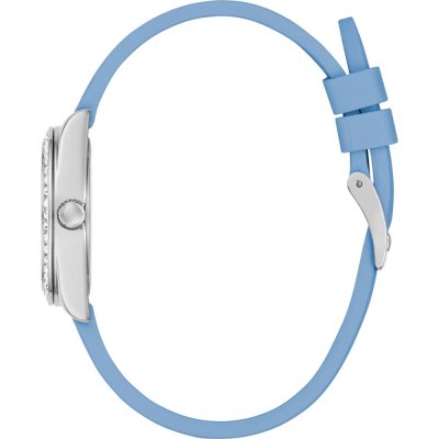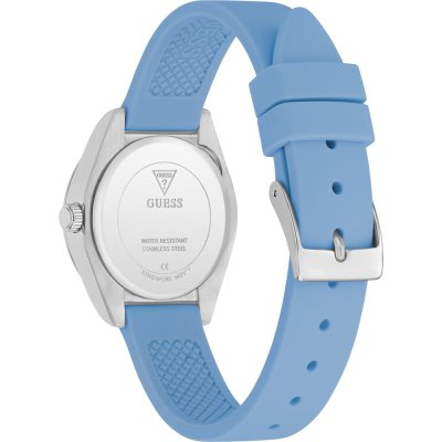 Zegarek marki Guess ma stal chirurgiczna kopertę 30 mm średnicy i jest wyposażony w pasek z materiału guma. Wewnątrz koperty jest mechanizm Seiko i zegarek ma także szkiełko Mineralny.