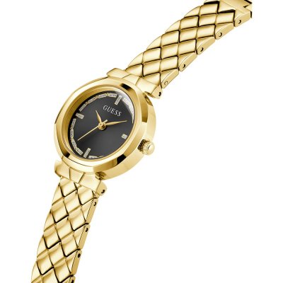 Zegarek marki Guess ma stal chirurgiczna kopertę 26 mm średnicy i jest wyposażony w pasek z materiału stal chirurgiczna. Wewnątrz koperty jest mechanizm Seiko i zegarek ma także szkiełko Mineralny.