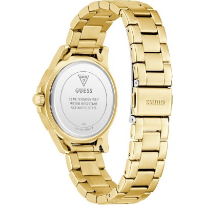 Zegarek marki Guess ma stal chirurgiczna kopertę 35 mm średnicy i jest wyposażony w pasek z materiału stal chirurgiczna. Wewnątrz koperty jest mechanizm Seiko i zegarek ma także szkiełko Mineralny.