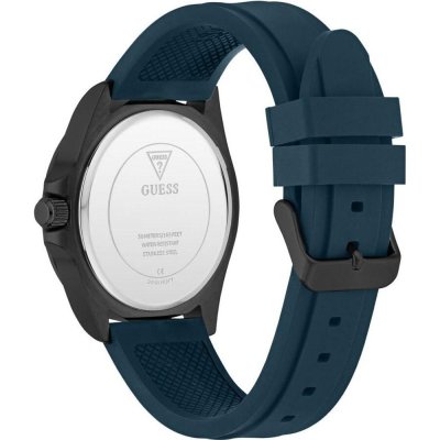 Zegarek marki Guess ma stal chirurgiczna kopertę 42 mm średnicy i jest wyposażony w pasek z materiału guma. Wewnątrz koperty jest mechanizm Seiko i zegarek ma także szkiełko Mineralny.