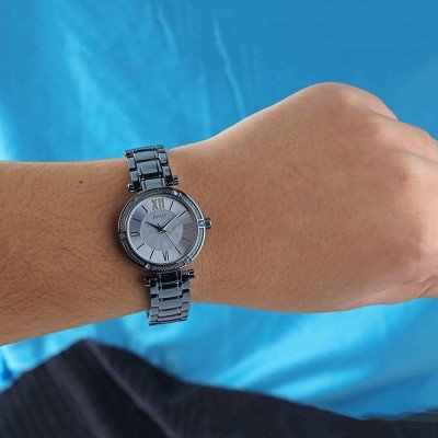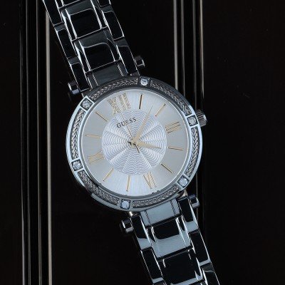 Zegarek marki Guess ma stal chirurgiczna kopertę 30 mm średnicy i jest wyposażony w pasek z materiału stal chirurgiczna. Wewnątrz koperty jest mechanizm Seiko i zegarek ma także szkiełko Mineralny.