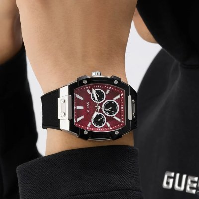 Zegarek marki Guess ma stal chirurgiczna kopertę 42 mm średnicy i jest wyposażony w pasek z materiału guma. Wewnątrz koperty jest mechanizm Seiko Instruments Inc. i zegarek ma także szkiełko Mineralny.