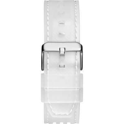 Zegarek marki Guess ma stal chirurgiczna kopertę 43 mm średnicy i jest wyposażony w pasek z materiału guma.