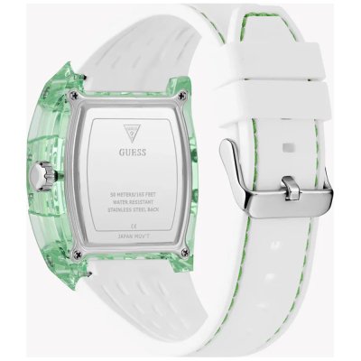 Zegarek marki Guess ma Żywica kopertę 43 mm średnicy i jest wyposażony w pasek z materiału guma.