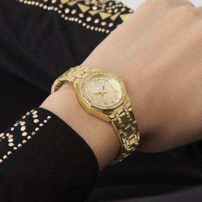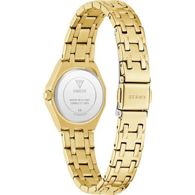 Zegarek marki Guess ma stal chirurgiczna kopertę 25 mm średnicy i jest wyposażony w pasek z materiału stal chirurgiczna. Wewnątrz koperty jest mechanizm Seiko i zegarek ma także szkiełko Mineralny.