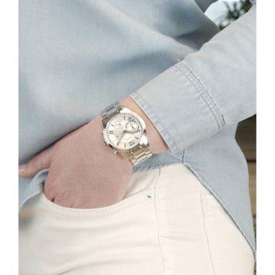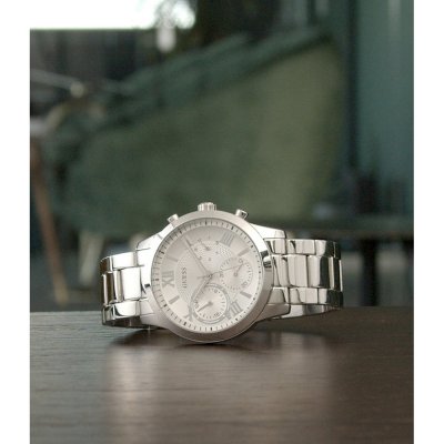 Zegarek marki Guess ma stal chirurgiczna kopertę 40 mm średnicy i jest wyposażony w pasek z materiału stal chirurgiczna. Wewnątrz koperty jest mechanizm Seiko Instruments Inc. i zegarek ma także szkiełko Mineralny.