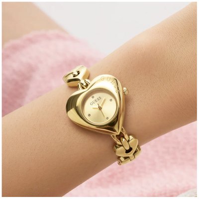 Zegarek marki Guess ma stal chirurgiczna kopertę 28 mm średnicy i jest wyposażony w pasek z materiału stal chirurgiczna. Wewnątrz koperty jest mechanizm Seiko i zegarek ma także szkiełko Mineralny.