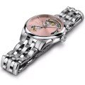 Hamilton Jazzmaster Viewmatic doskonale równoważy styl formalny i sportowy, łącząc pięknie wykończoną kopertę z mieszanką powierzchni polerowanych na wysoki połysk i szczotkowanych oraz intrygującą tarczę w kształcie serca, która eksponuje elementy mechaniczne bijące pod spodem. Wykwintnie wykonane wycięcia w tarczy mają fazę polerowaną na wysoki połysk, przechodzącą ostro w szczotkowaną krawędź wewnętrzną, kierując wzrok na automatyczny mechanizm H-10. Ten bardzo dokładny mechanizm Hamilton zawiera niemagnetyczną sprężynę balansową Nivachron i ma rezerwę chodu nie mniejszą niż 80 godzin. Jazzmaster Viewmatic Open Heart Auto jest dostępny w różnych kolorach i w rozmiarach koperty 40 mm i 36 mm, zarówno dla mężczyzn, jak i kobiet.