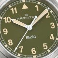 Zegarek marki Hamilton ma stal chirurgiczna kopertę 33 mm średnicy i jest wyposażony w pasek z materiału Z materiału. Wewnątrz koperty jest mechanizm ETA i zegarek ma także szkiełko Sapphire.