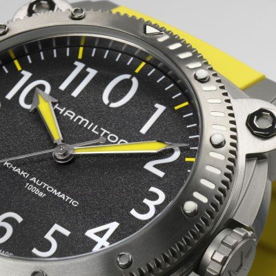 Zegarek marki Hamilton ma Tytan kopertę 46 mm średnicy i jest wyposażony w pasek z materiału guma. Wewnątrz koperty jest mechanizm ETA i zegarek ma także szkiełko Pojedyncze szafirowe szkiełko anty-refleksyjne.