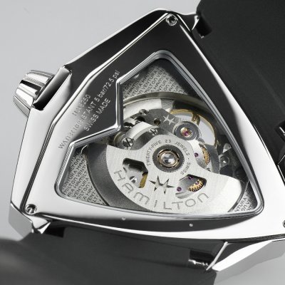 Jeśli szukasz zegarka, który jest nietypowy i nie boi się wyróżniać, ale nadal chcesz mieć zabytkowy element, Hamilton Ventura XXL Skeleton może być właśnie tym, czego szukasz. W 1957 roku Ventura był pierwszym na świecie zegarkiem elektronicznym, ale ta wersja ośmiela się powrócić do ery mechanicznej. Ventura XXL Skeleton to nie tylko 46-milimetrowy zegarek, ale także mechaniczna wizytówka całkowicie nowoczesnego szkieletowanego mechanizmu H-10 (ETA C07.901 base) z rezerwą mocy do 80 godzin! Ventura XXL Skeleton jest również bardziej trójkątna z ostrzejszą, tarasową kopertą i jest oczywiście znacznie większa, aby zaspokoić potrzeby nowoczesnego, długiego i wysokiego dżentelmena. Niklowane wskazówki Dauphine z powłoką Super-LumiNova są smukłe, aby zapewnić jak najlepszy widok mechanizmu. Mechanizm ten jest również widoczny przez dwustronny szafirowy dekiel pokryty powłoką AR, gdzie można podziwiać niestandardową płytkę z monogramem i markowy ciężar oscylacyjny. Ten niezwykle unikalny zegarek Hamilton w rozmiarze XXL nie będzie pasował każdemu, niemniej jednak jest to wysokiej jakości zegarek z głębokimi korzeniami w historii zegarmistrzostwa i rockandrollowym rodowodem, który można cenić.
