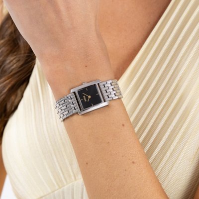 Zegarek marki Hugo Boss ma stal chirurgiczna kopertę 26 mm średnicy i jest wyposażony w pasek z materiału stal chirurgiczna.