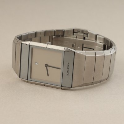 Zegarek marki Jacob Jensen ma stal chirurgiczna kopertę 30 mm średnicy i jest wyposażony w pasek z materiału stal chirurgiczna. Wewnątrz koperty jest mechanizm ISA i zegarek ma także szkiełko Sapphire.