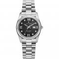 Zegarek marki Jacques du Manoir ma stal chirurgiczna kopertę 34 mm średnicy i jest wyposażony w pasek z materiału stal chirurgiczna. Wewnątrz koperty jest mechanizm Ronda i zegarek ma także szkiełko Mineralny.