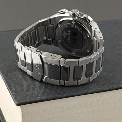 Zegarek marki Jaguar ma stal chirurgiczna kopertę 44 mm średnicy i jest wyposażony w pasek z materiału stal chirurgiczna. Wewnątrz koperty jest mechanizm Ronda i zegarek ma także szkiełko Sapphire.
