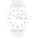 Pasek do zegarka Lacoste jest wykonany z materiału silikonowo i jest zamocowany do zegarka za pomocą… kołki sprężyste. Ten pasek ma szerokość 21 mm i zamyka się za pomocą sprzączka. Ten pasek ma proste mocowanie, co oznacza, że pasuje do.