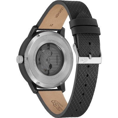 Zegarek marki Lacoste ma aluminium kopertę 44 mm średnicy i jest wyposażony w pasek z materiału skóra. Wewnątrz koperty jest mechanizm Seagull i zegarek ma także szkiełko Mineralny.