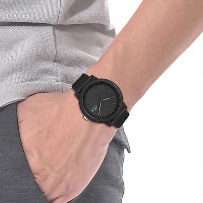 Zegarek marki Lacoste ma Żywica kopertę 42 mm średnicy i jest wyposażony w pasek z materiału guma. Wewnątrz koperty jest mechanizm Seiko i zegarek ma także szkiełko Mineralny.
