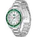 Zegarek marki Lacoste ma stal chirurgiczna kopertę 39 mm średnicy i jest wyposażony w pasek z materiału stal chirurgiczna.