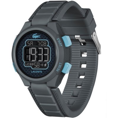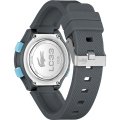 Zegarek marki Lacoste ma Żywica kopertę 34 mm średnicy i jest wyposażony w pasek z materiału guma.
