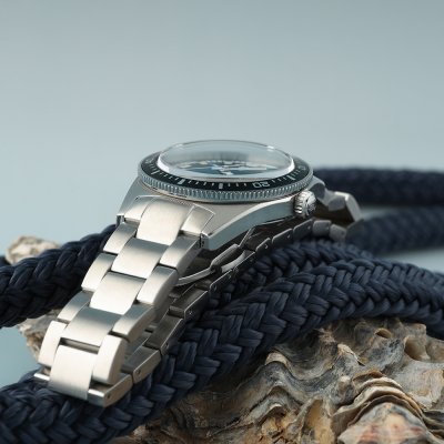 Stainless steel 70s designed quartz diver with ocean blue dial
