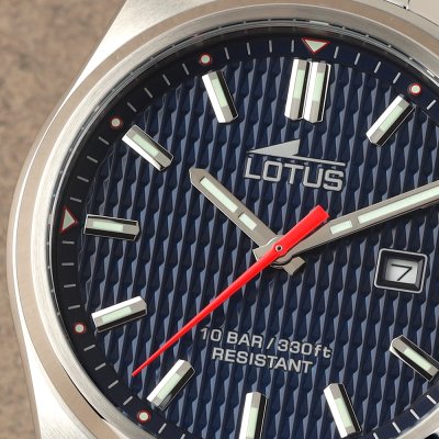 Zegarek marki Lotus ma stal chirurgiczna kopertę 42 mm średnicy i jest wyposażony w pasek z materiału stal chirurgiczna. Wewnątrz koperty jest mechanizm Miyota i zegarek ma także szkiełko Mineralny.