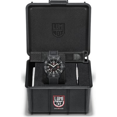 Zegarek marki Luminox ma stal chirurgiczna kopertę 45 mm średnicy i jest wyposażony w pasek z materiału guma. Wewnątrz koperty jest mechanizm Ronda i zegarek ma także szkiełko Sapphire.