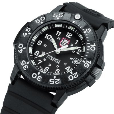 A.3001 to oryginalny zegarek Luminox Navy Seal zamówiony przez i opracowany wspólnie z U.S. Navy Seals. Wodoodporny do 20 ATM z kopertą wzmocnioną włóknem węglowym, jednokierunkowym bezelem i opatentowanymi luminescencyjnymi materiałami Luminox zapewniającymi doskonałą widoczność nawet podczas nocnych nurkowań.