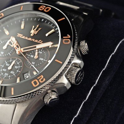 Zegarek marki Maserati ma stal chirurgiczna kopertę 43 mm średnicy i jest wyposażony w pasek z materiału stal chirurgiczna. Wewnątrz koperty jest mechanizm Miyota i zegarek ma także szkiełko Mineralny.