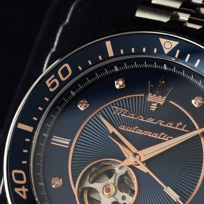 Zegarek marki Maserati ma stal chirurgiczna kopertę 44 mm średnicy i jest wyposażony w pasek z materiału stal chirurgiczna. Wewnątrz koperty jest mechanizm Seiko Instruments Inc. i zegarek ma także szkiełko Sapphire.