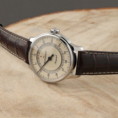 Zegarek marki Meistersinger ma stal chirurgiczna kopertę 38 mm średnicy i jest wyposażony w pasek z materiału skóra. Wewnątrz koperty jest mechanizm Sellita i zegarek ma także szkiełko Sapphire.