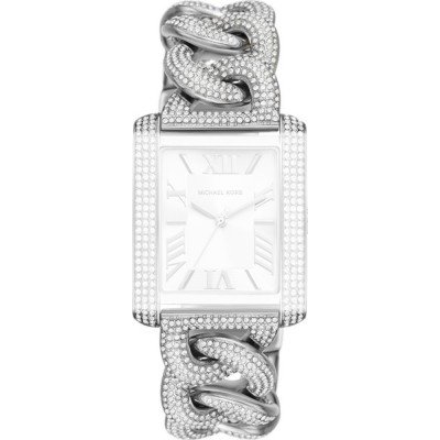Pasek do zegarka Michael Kors jest wykonany z materiału stal nierdzewna i jest zamocowany do zegarka za pomocą… kołki sprężyste. Ten pasek ma szerokość 22 mm i zamyka się za pomocą zapięcie biżuteryjne. Ten pasek nie ma prostego mocowania, co oznacza, że pasuje wyłącznie do zegarków z poniższej listy.