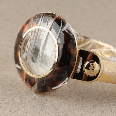 New Old Stock Stalowa bransoleta w kolorze złotym z kopertą i 3 paskami (biały, różowy żółw)