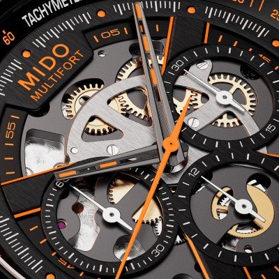 Zegarek marki MIDO ma stal chirurgiczna kopertę 43 mm średnicy i jest wyposażony w pasek z materiału guma. Wewnątrz koperty jest mechanizm ETA i zegarek ma także szkiełko Podwójne mineralne szkiełko antyrelfeksyjne.