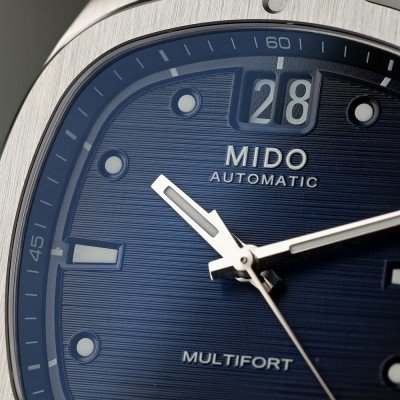 Mido Multifort TV Big Date jest oparty na projekcie z lat 70-tych. Kształt ten był często używany w sportowych zegarkach męskich w tamtym czasie i jest teraz ponownie modny, ale Mido była pierwszą marką, która wprowadziła ten kształt w 1973 roku. Multifort TV Big Date jest dostępny w kilku kolorach i oferuje wybór między bransoletą ze stali nierdzewnej lub gumowym paskiem, a także wersją z chronografem. Zegarek ma sportowy rozmiar 40 mm, ale wygląda elegancko dzięki zaokrąglonym rogom i wyrafinowanemu wykończeniu. Dzięki możliwości wyboru różnych rodzajów łatwo wymiennych pasków, zegarek jest odpowiedni na każdy dzień i okazję.